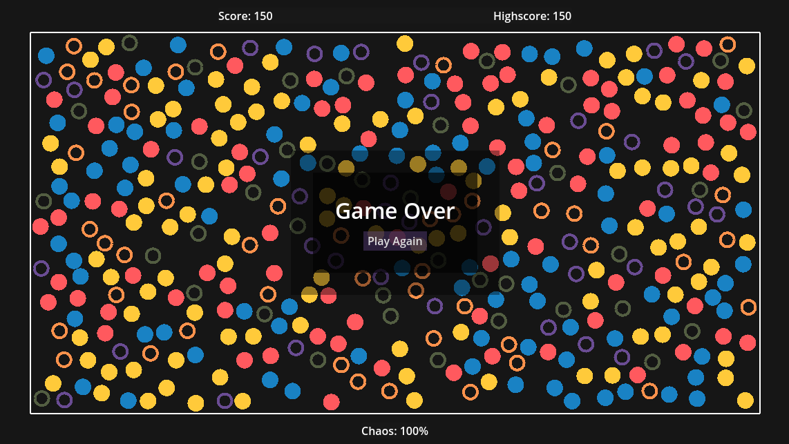 The game is highscore based and there is no end so you don't actually get anything for clearing the board. I'm impressed that you were able to be that successful at fighting back the chaos though. Thanks for playing!
